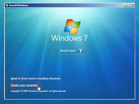 Step 1. Now take the disc and boot your locked Windows 7 computer or laptop with it. In the course of action, in the installation interface, you wil see two link, just click "Repair Your Computer".