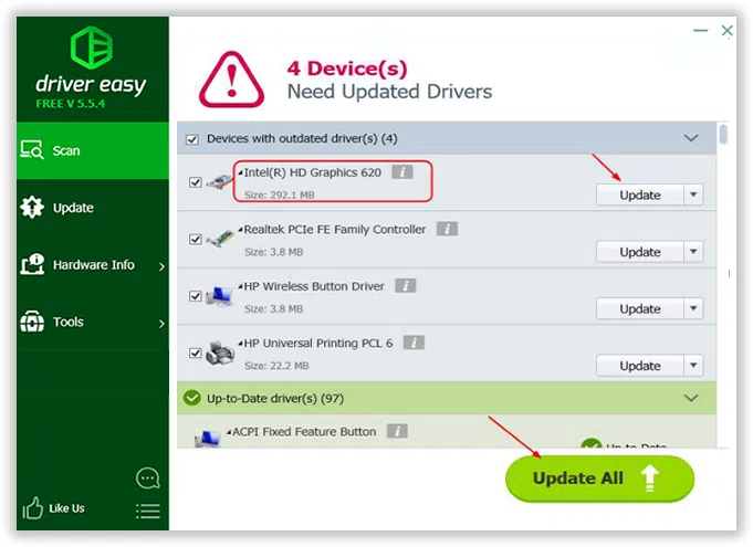 After the scanning is completed, the program will show which driver to install and which driver to update. Directly install or update the drivers from the program and hopefully, your newly installed hardware will work smoothly now.